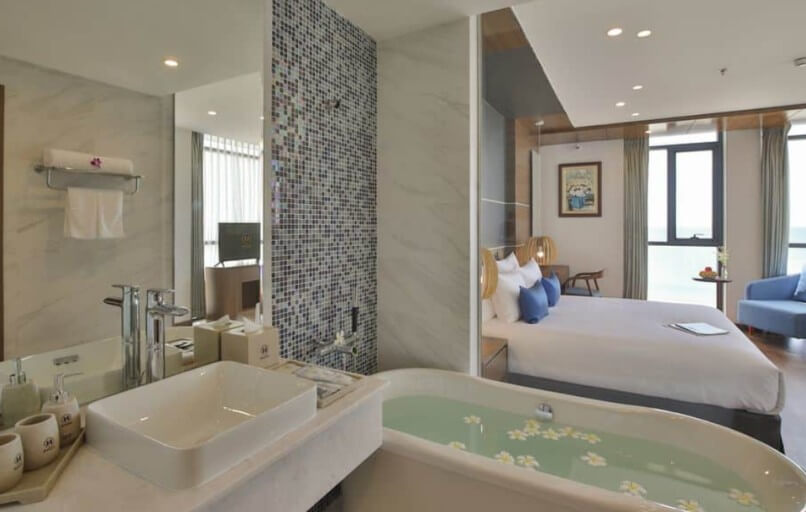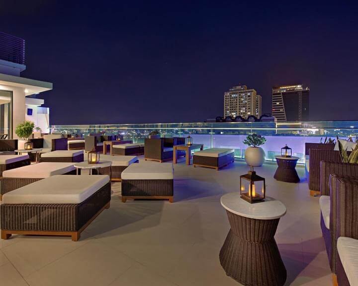 특징: 루프탑 수영장 운영시간이 길어서 밤에도 수영을 하면서 미케비치와 다낭시내의 모습을 감상할 수 있음.