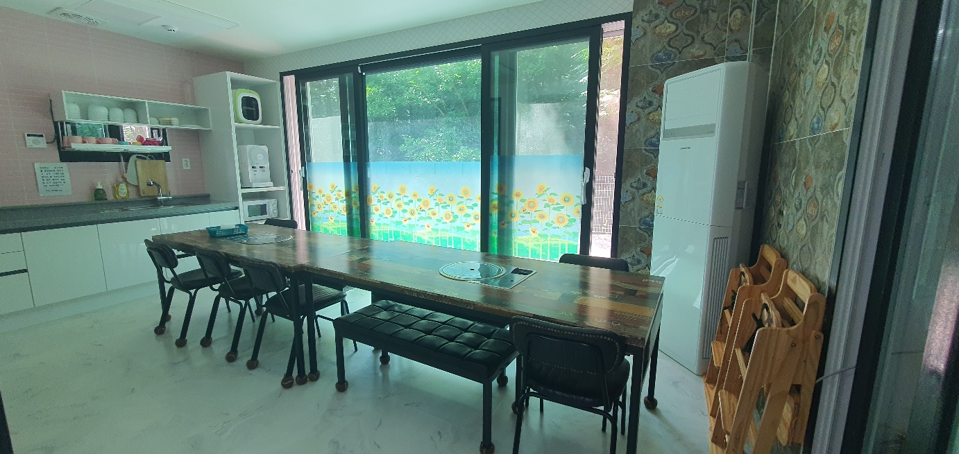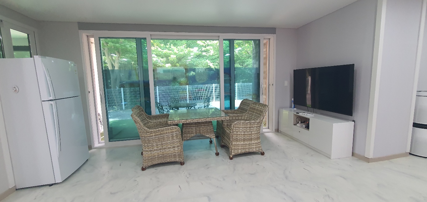 실외와 실내 두 곳 다 아이들이 충분히 즐길 수 있도록 다양하게 준비되어 있어 너무너무 만족합니다. D1룸은 1층이며 아이들이 노는 공간이 넓어서 뛰어다니며 놀아도 충분했습니다. 특히 키즈카페처럼 미끄럼틀과 트랜펄린이 있으니 아이들이 더욱더 즐겁게 놀았으며 거실에서 어른들이 앉아서 서로 대화하면서도 잘 보이는 구조라서 더욱 마음에 들었습니다.