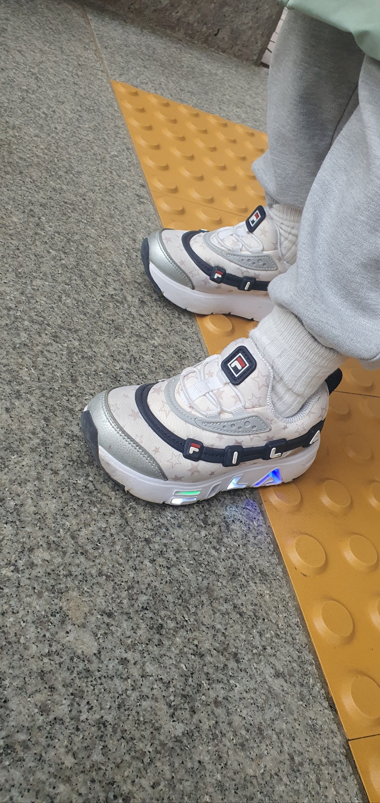 이 신발을 사게 된 중요한 이유 중 하나가 불빛이 들어온다는 것과 신발끈이 없어서 디자인이 깔끔하다는 것이었습니다. 밤에 걸을 때 빛이 나오면 아이가 많이 행복해합니다.