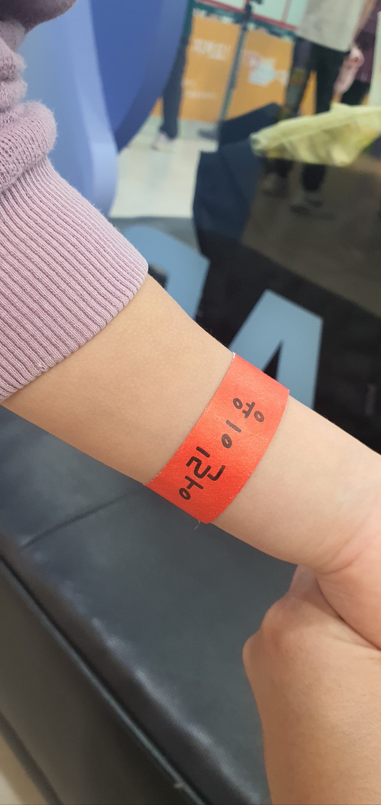 안내 데스크에서 예약 확인 하시면 손목에 차는 띠를 줍니다.