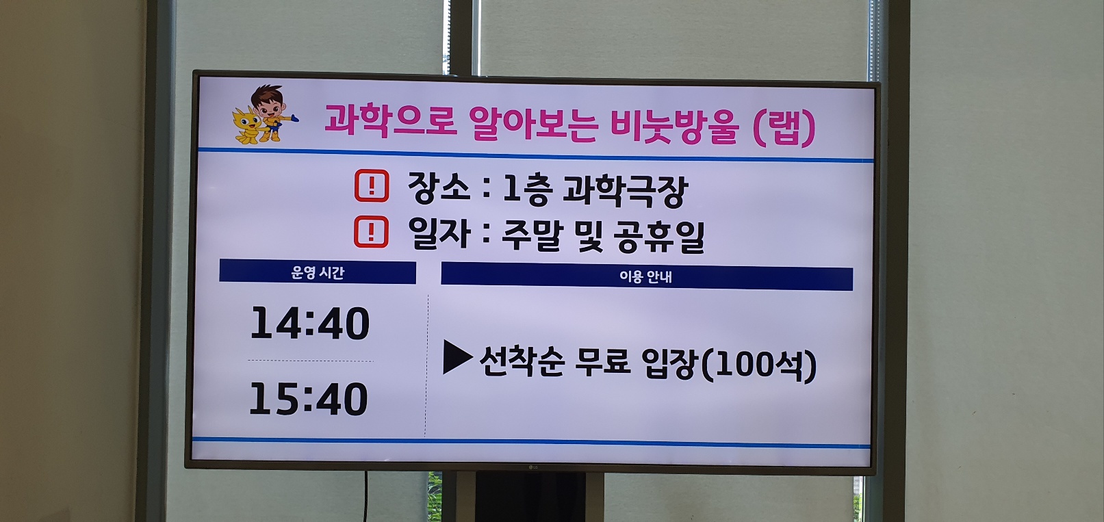 12시 30분에 과학관을 입장하여 2층과 1층을 구경하다가 11시 20분쯤 과학극장 문 앞에서 줄을 섰습니다. 선착순으로 100석만 들어갈 수 있기에 미리 시간 확인 후 줄을 서야 합니다.