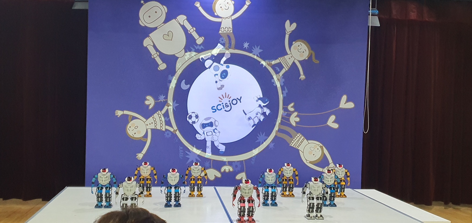 로봇들이 헬로카봇 노래에 맞춰 단체로 춤을 춥니다. 아이들이 너무 좋아했습니다.