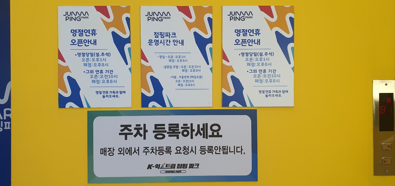 그리고 주차장 내부가 좁아서 큰 차로 오는 초보자분들은 어렵다고 느끼실 거예요. 사람마다 다르겠지만요. 저는 점핑파크는 주말에 무조건 오픈런합니다~! 오픈런하시는 분들 많아요....ㅎㅎㅎㅎ 그래도 오픈런하게 되면 주차자리는 있었고요. 오후 3시쯤 갔을 때는 주차자리가 아예 없어서 다른 곳에 주차했습니다.ㅠㅠ - 운영시간 안내