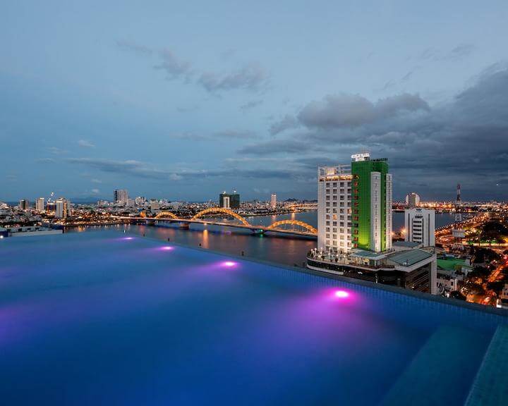 특징: 시내에서 저렴하지만 인피니티풀장이 있음. 저렴하지만 욕실에 욕조가 있음. 바닥이 마룻바닥으로 되어있음. 용다리가 가까워 야경이 더 멋지게 보임.