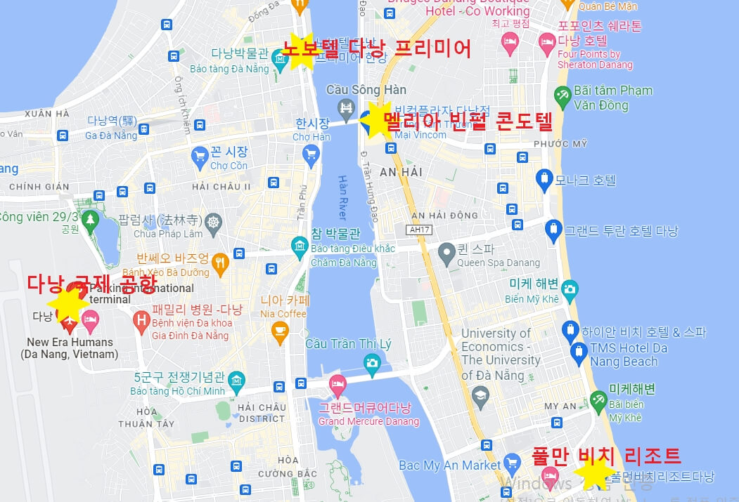 위치: 공항에서 차로 15분 거리. 다낭 시내에 위치.
