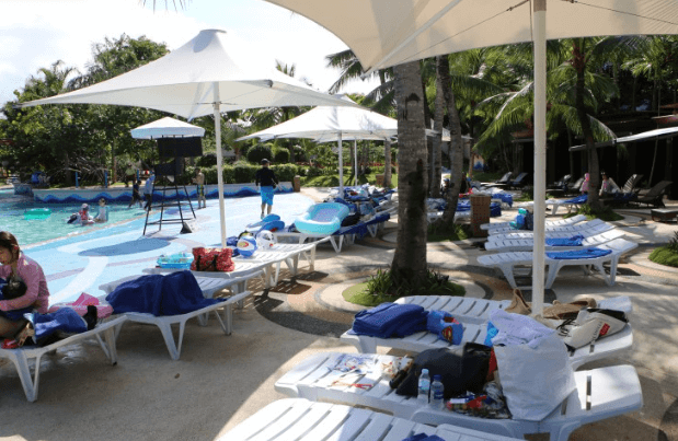 아이들은 메인풀에서 어른들은 선베드에서 일거양득이네요.