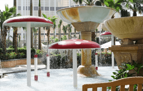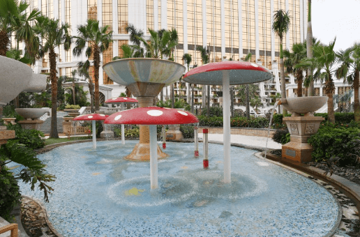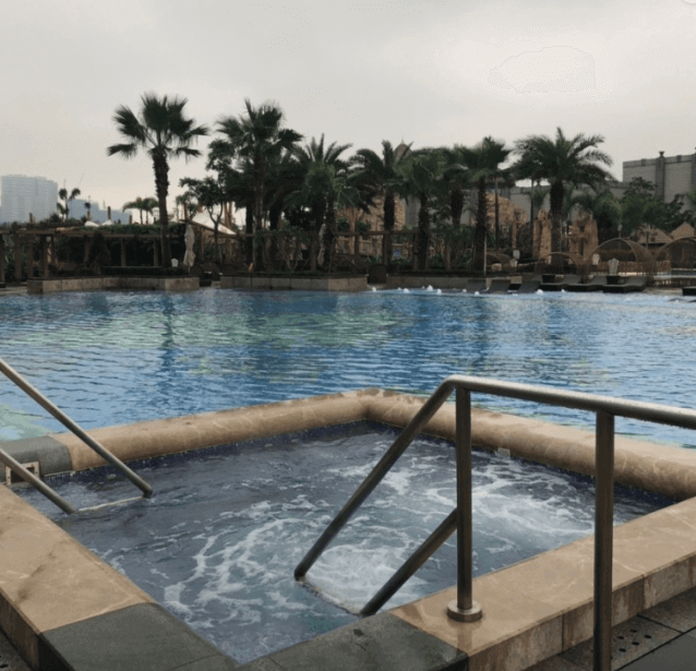 여기는 초등학생 정도의 자녀를 가진 가족에게 좋은 수영장이 될 것 같습니다. 웅장한 느낌의 스튜디오 호텔을 수영장 바로 앞에서 볼 수 있는 데요, 워터파크같이 익사이팅한 놀이기구는 없지만 도심에서 휴식을 취하기 좋은 느낌의 수영장입니다.