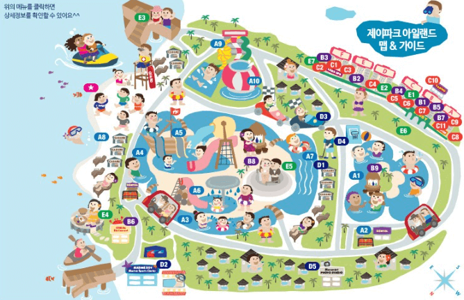 해변부터 수영장까지 한 번에 즐길 수 있는 제이파크 아일랜드입니다.