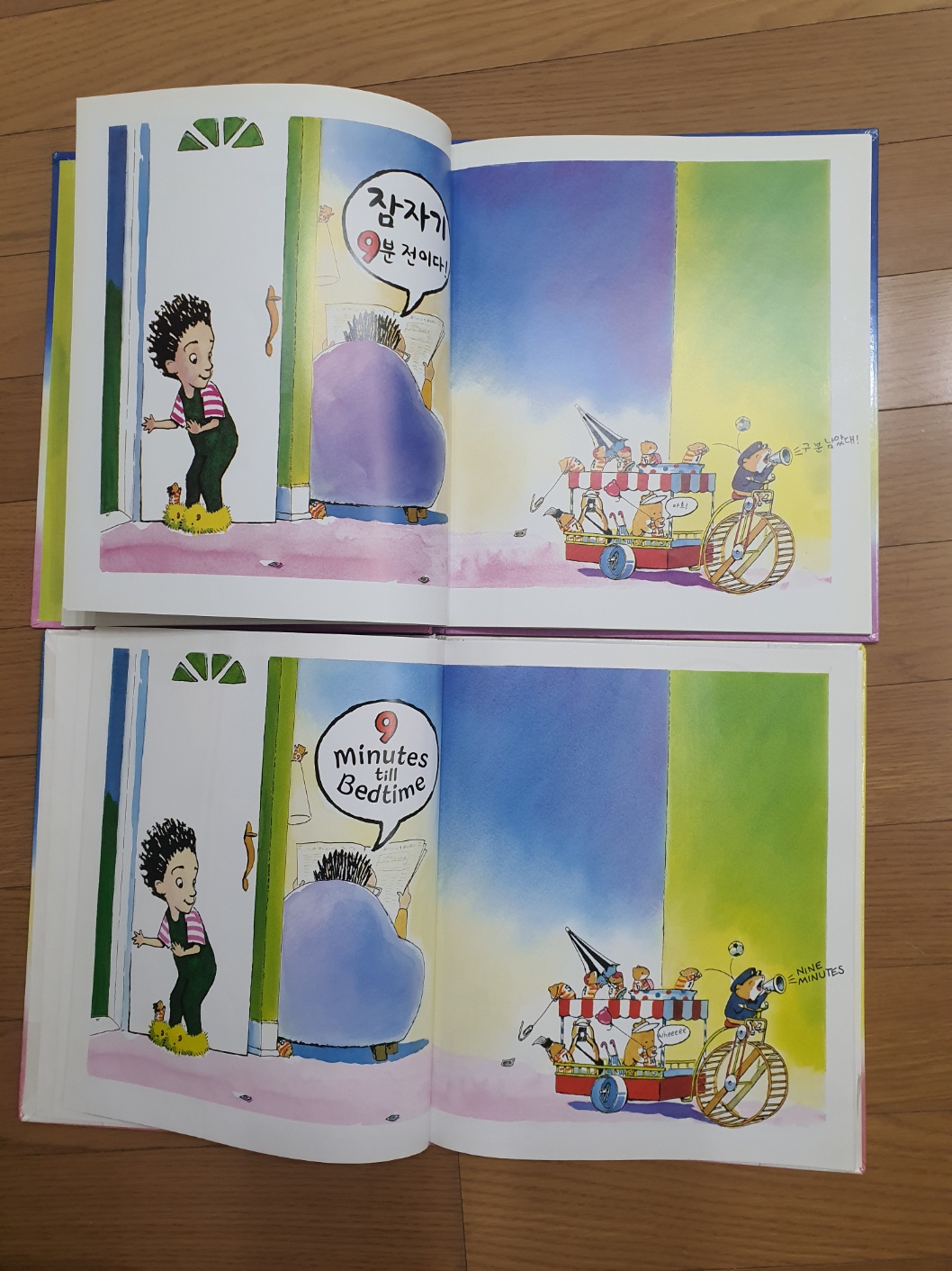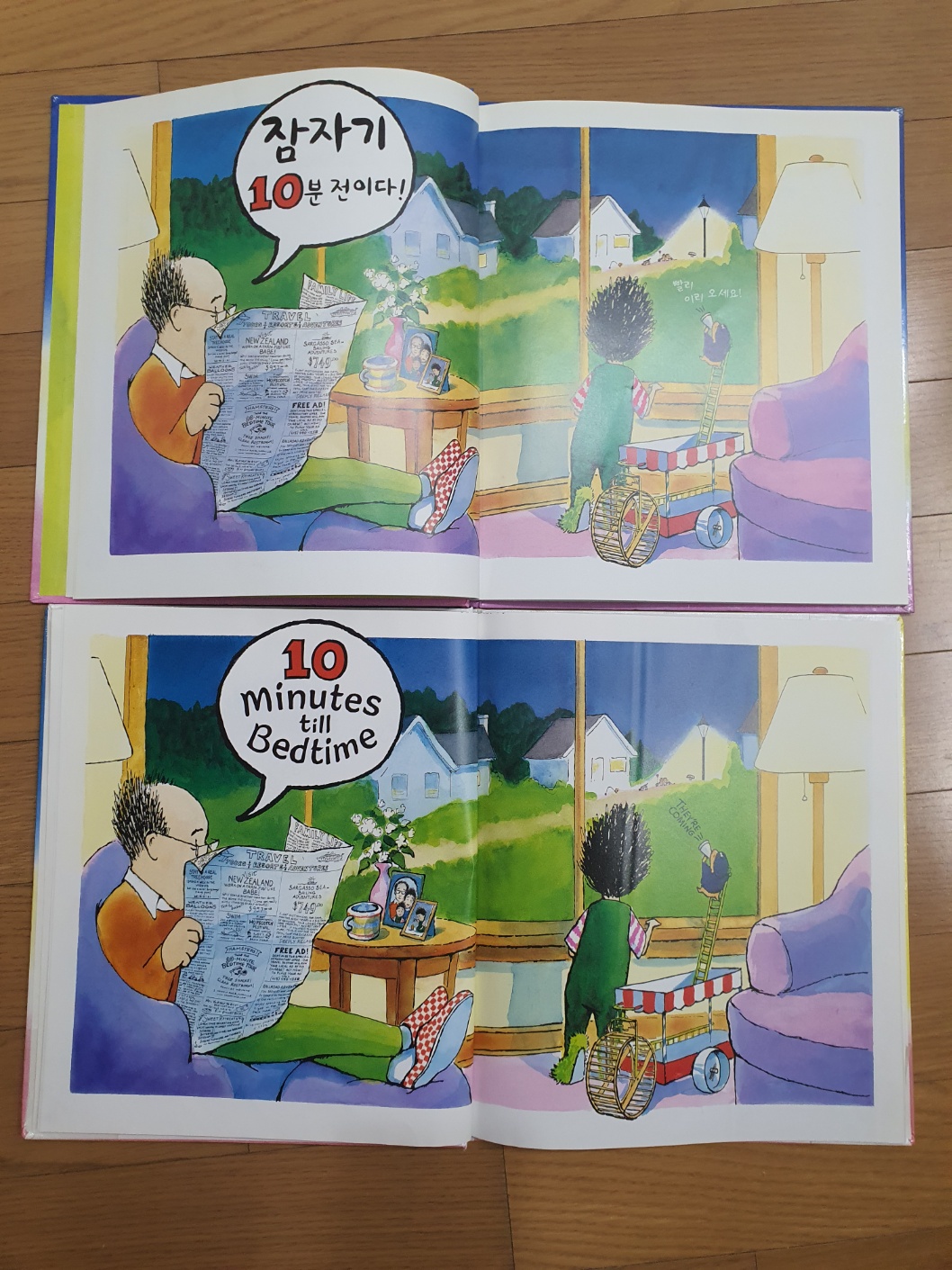 '잠자기 10분 전'이라는 책을 아이가 4살 때쯤 자기 전 매일 읽었던 책입니다. 햄스터 그림들이 너무 귀엽고 웃긴 그림들도 많아 아이가 매일 같은 부분에서 똑같이 반복되어 웃었는데 질리지도 않는지 너무 좋아했던 책입니다. 현재는 만 6세가 되었는데 한글이 아닌 영어로 된 10 minutes till Bedtime책을 발견하자마자 도서관에서 빌려와서 봤더니 예전에 읽었던 기억이 나는지 집중하면서 읽게 되어 추천합니다.