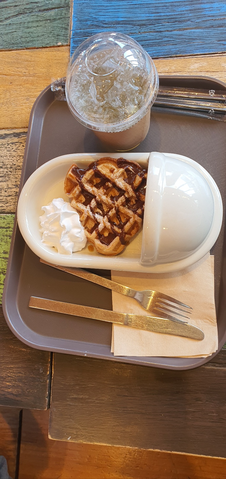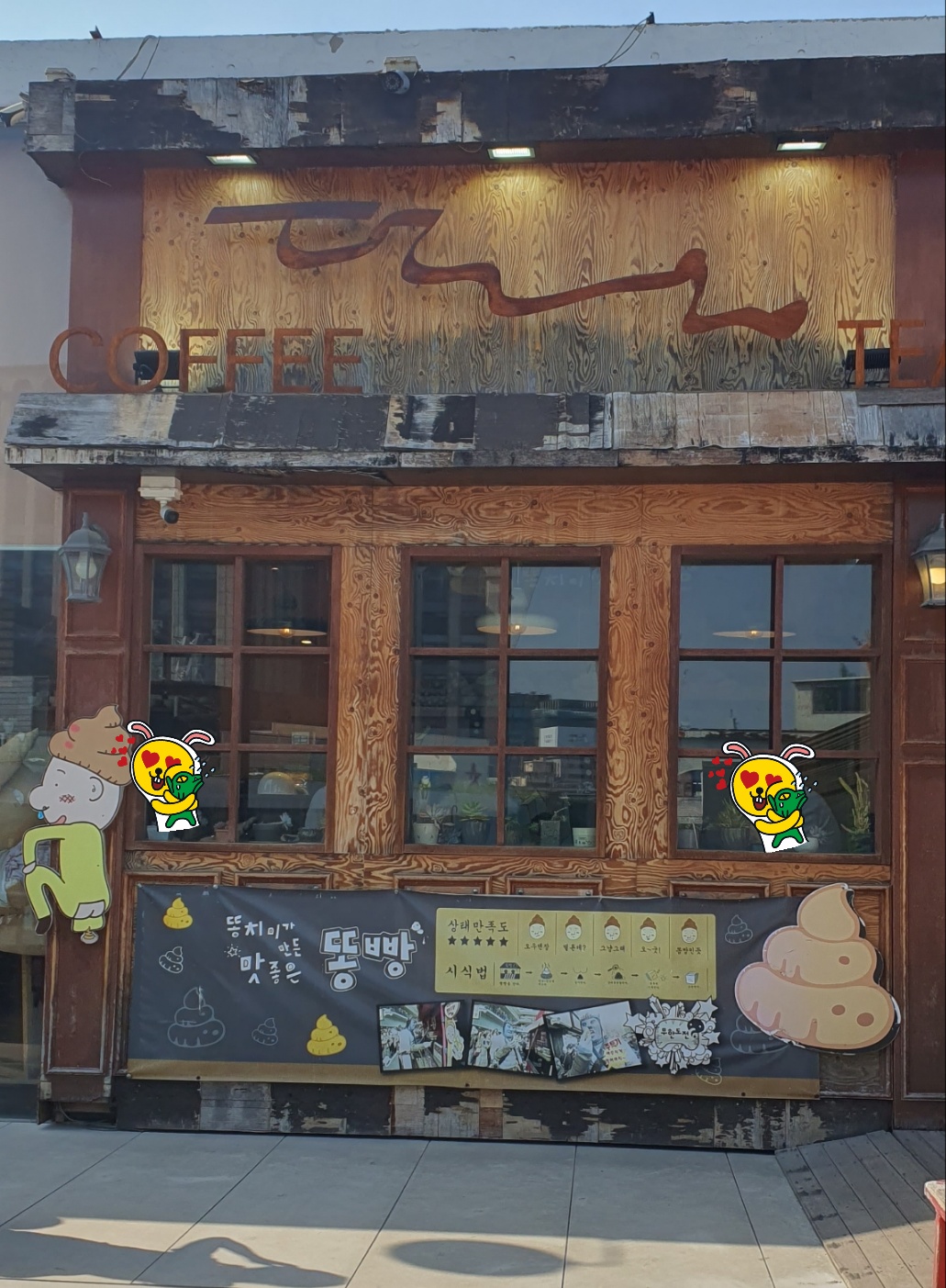 커피부터 티까지 다양하게 있었고 똥카페에서 유명한 똥와플을 먹었습니다.