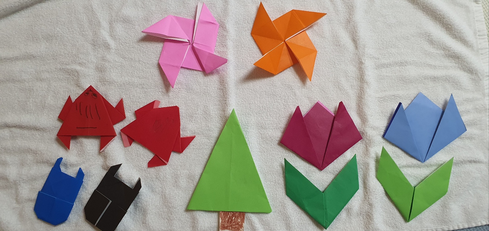 3. 저희 아이가 접은 종이 개구리, 바람개비, 나무, 튤립, 사슴벌레입니다^.^