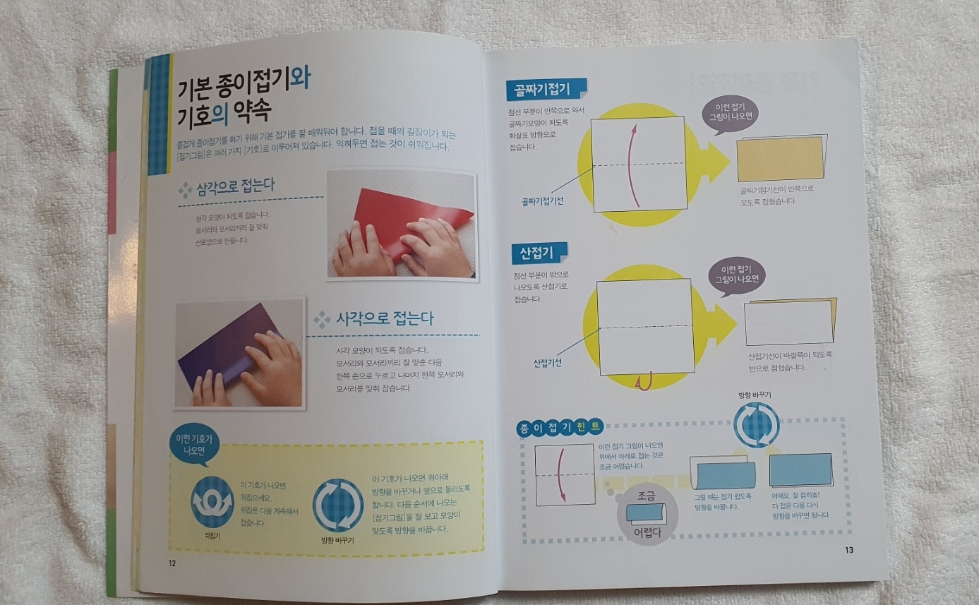 1. 처음 접하는 만큼 기본종이 접기와 종이 접기의 기호를 보는 방법을 익힐 수 있게 설명이 먼저 되어 있습니다.
