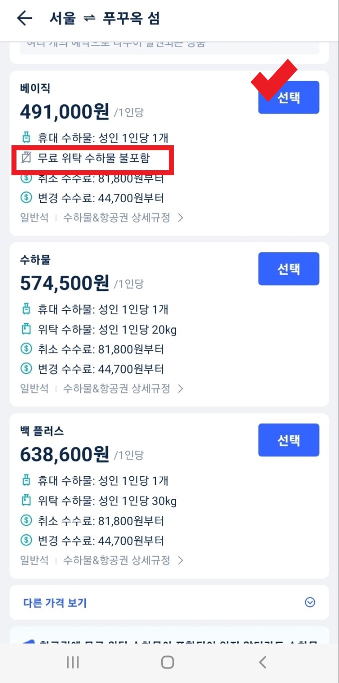 1. 베이직(수하물 불포함)  VS 수하물 무게 포함
