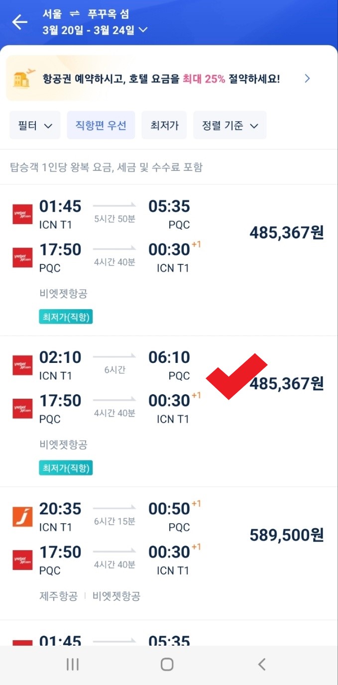 저는 어느 회사 비행기든 상관없이 제일 저렴한 직항을 선택하고 싶어서 비엣젯을 선택했습니다.